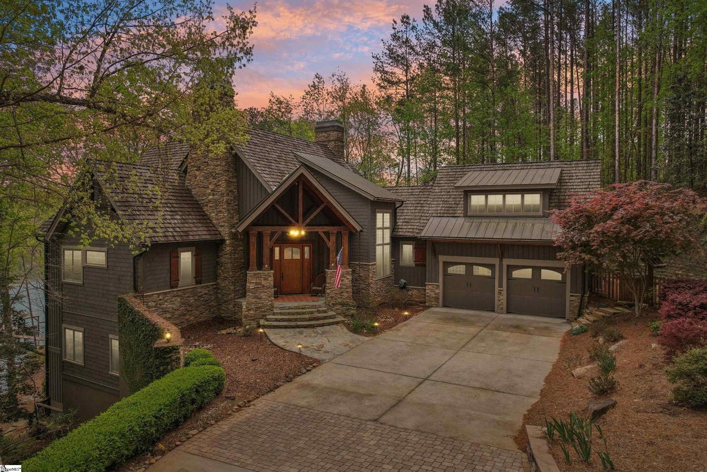 Welcome home to your lakeside sanctuary at 311 S Cove Road, nestled within the Reserve at Lake Keowee. This custom-crafted retreat perfectly blends timeless elegance with modern flair, providing a warm and inviting space where every detail has been thoughtfully designed. From the moment you step inside, you’re greeted by tall coffered ceilings, rich beam work, and bright, open spaces that showcase exceptional craftsmanship throughout. The kitchen is well-equipped with a 6-burner cooktop, double ovens, lighted accent cabinetry, and an expansive island—ideal for gathering with friends and family. The main-level primary suite boasts a vaulted ceiling, serene lake views, and a luxurious bathroom with a jetted tub, oversized shower with wall jets, and dual vanities. The lower-level is an entertainer’s dream, featuring a spacious recreation room with a wood-burning fireplace, a pool table area, wet bar, and a walk-in wine cellar. Two additional generously sized bedrooms are also located on the lower level both with their own en-suite bathroom; one of which features four custom built-in bunk beds. Additionally, the bedroom above the 2-car garage creates the perfect get away for family or guests. Step outside to experience quintessential Lake Keowee outdoor living . Relax under the covered porch with a cozy fireplace, unwind in the hot tub overlooking the lake, or head down to your private covered dock, complete with three jetski docks and a $10,000.00 touchless boat cover for keeping your boat looking new. The cover is remote controlled and lowers over the entire boat but raises quickly for access. The property is nestled on the side of B cove in The Reserve, a cove that’s always emerald green and crystal clear. The dock and shoreline are nicely removed from the busier lake sections, although the cove is large enough to provide impressive views from both levels of the home’s interior. Reserve membership is available for separate purchase, providing access to first class amenities, including a Jack Nicklaus Signature Golf Course, a warm and casual clubhouse, a marina, tennis and pickleball courts, a fitness center, Guest House, and multiple dining options. Come experience lake living in one of Lake Keowee’s premier communities.