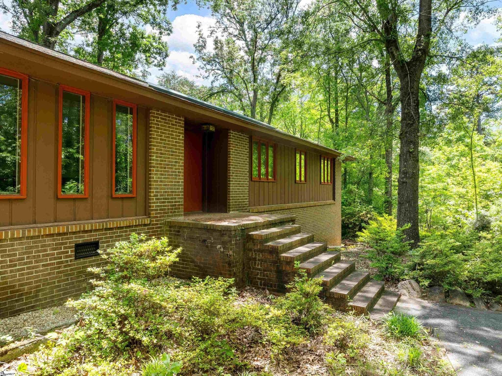 This 4.12 acre retreat is surrounded by lush landscaping and gorgeous trees to provide ultimate privacy for the lovely home, in-ground pool, sauna and outdoor living areas. The beautiful iron gates and long driveway will lead you to the large brick home with 5 Bedrooms, 2.5 Bathrooms, Living Room, Dining Room, Den, Screened Porch, Recreation Room, Workshop and 2 car attached carport. Enjoy touches of the mid-century modern style as you enter through the front door to the foyer. This leads to the traditional Living Room & Dining Room area with gorgeous hardwood floors on the left as well as the cozy Den with beautiful woodwork, built-in bookshelves and a brick fireplace with wood-burning stove. The French doors lead from the Den to the Screened Porch, Patio & Outdoor Kitchen area. Both the Den and the Dining Room connect to the Kitchen with refrigerator (to stay) & built-in banquette seating with a fantastic light above. Down the hall is the Half Bath, Laundry Room (with washer & dryer to stay) and 5th Bedroom with 2 closets (perfect for a guest room, playroom or office). The 4 other Bedrooms are on the opposite side of the Den including the Primary suite with multiple closets and a Full Bathroom. The 2nd Full bathroom is conveniently located near the secondary bedrooms. The back sidewalk leads to an exterior door on the lower level which includes a large Workshop, a large Recreation Room and access to the crawl space/unfinished basement area.The driveway also comes around to this side door which gives it the potential to be turned into an apartment/In-Law space with a separate entrance. Off the back patio area is a sidewalk which leads to the beautiful 40x20 in-ground pool, patio, & additional seating area. Another pathway leads from the pool area to a cute red building which includes a sauna and a sitting area/party room. There are two gated entrances as well as fencing around the property. Enjoy the privacy of being nestled among the trees throughout this gorgeous property where each season brings another surprise of blooms and beauty.