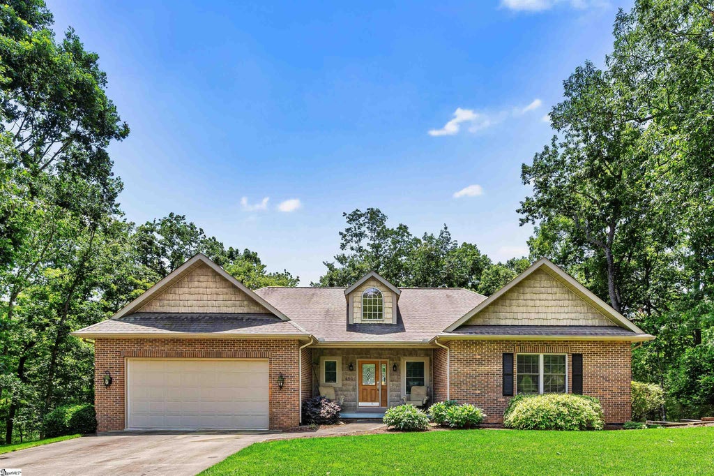 Tucked away in the quiet Shamrock Forest neighborhood, this private and well-maintained home offers a serene wooded backdrop and an easy-living layout. The exterior features low-maintenance brick and vinyl siding with shake accents in the gables, plus a welcoming covered front porch. Inside, the foyer leads to a vaulted living room with hardwood floors, gas fireplace, and a triple window that frames lush views of the forest behind the home. The living space opens to a sunny breakfast area and Trex deck, perfect for enjoying peaceful mornings or evening gatherings. The kitchen features granite countertops, bar seating, built-in pantry, and brand new LG stainless steel appliances installed in May 2025. The split-bedroom floor plan offers privacy, with vaulted ceilings in the secondary bedrooms and a tray ceiling in the primary suite. The primary bathroom includes dual vanities, jetted tub with TV, separate shower, and multiple closets. All wet areas feature tile flooring, and the laundry room conveniently connects to the garage. The finished basement includes a rec room with built-in bar (which remains), a gas fireplace, mini-split HVAC system, cabinetry with sink, mini refrigerator, and a full bath with corner shower—offering flexibility for an in-law suite, guest space, or potential rental. Located minutes from downtown Columbus, shopping, dining, and St. Luke’s Hospital.