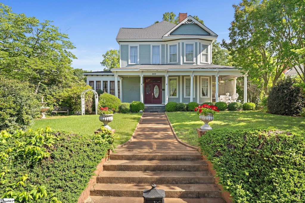 Step back in time while enjoying modern luxury in this beautifully maintained Victorian masterpiece, located in the Westside Historic District of Anderson, SC. Built circa 1907, the Bolt-Bell House is a 4 Bedroom, 3 Full Bathroom home offering around 3,300 square feet of refined living space, nestled on a beautifully landscaped .33 acre lot. This home has been thoughtfully updated while preserving its original character. From the moment you arrive, the home’s commanding curb appeal and expansive front porch invite you into a world of timeless elegance and tranquility. Inside, discover high ceilings, intricate moldings, and classic Southern charm throughout. The Gourmet Kitchen offers abundant prep space, outfitted with modern appliances, including 3 convection ovens and built in microwave in the island breakfast bar area. The Kitchen boasts a beautiful tin ceiling, wet bar, numerous cupboards and much more food and storage located in the Pantry, Mud Room, Laundry Room combo area just off the Kitchen for convenience. All this seamlessly blends function with beauty, making it the ideal space for culinary enthusiasts. The formal Living and Dining room offers perfect spaces for sophisticated entertaining or comfortable living, while a large Great Room with Full Bath and separate entrance from outside adds flexibility, perfect as a Guest Suite, Billiard Room, or Studio Apartment. The luxurious Primary Suite on the main level features a spa-inspired Bath and an enviable walk-in Closet. Upstairs, you’ll find an elegant Sitting Room that centers around the 3 spacious Bedrooms and Bathroom making for a peaceful retreat. Whether hosting a barbecue in the private backyard courtyard or enjoying a quiet morning on the front porch, this home offers a lifestyle as rich and welcoming as its history. There’s plenty of driveway parking or park in your 2-car detached garage. Only a 3-minute drive to Downtown Anderson’s Main Street with numerous gourmet upscale and casual restaurants, café’s, pubs, creameries and a candy store. Enjoy Craft Beer and Distilleries many of which have music, comedy and game nights! Great for clothes, shoes and antiques shopping too! Anderson also sponsors live concerts and theatre located in the heart of the City at Wren Park. So much to enjoy! 25 minutes to Clemson University for great College Football, 15 minutes to World Class Bass Fishing and Tournaments on Lake Hartwell and about 40 minutes to Greenville's Business Center, Restaurants and Shopping. This rare find is more than a home, it’s a legacy.