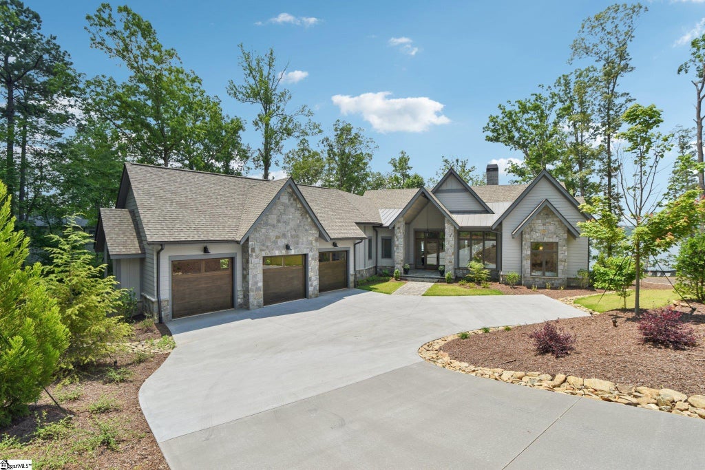Welcome to 221 Hermitage Drive, a custom lakefront paradise in The Cliffs at Keowee most convenient community, The Landing at Keowee Springs. Thoughtfully positioned to capture sweeping long-range views, this 5,015 sq. ft. home blends natural elements with modern luxury. With 5 bedrooms and 4.5 baths, it’s designed for everyday comfort or raucous family gatherings. Constructed to an architecturally designed plan by Design Elite, the vaulted great room brings the outside in and opens to panoramic water views through folding accordion doors. The interior decor and home design is transitional with a modern element, with stained ceiling beams, an elegant cast fireplace mantle, custom molding, and built-in surround sound that create a warm and sophisticated gathering space. The kitchen is both stylish and functional, featuring two large islands, Wolf and SubZero appliances, a gas cooktop with pasta arm, double ovens, quartz countertops, and a hidden pantry. A casual dining area, surrounded by windows on three sides, offers a picturesque lake view setting for every meal. The main-level owner’s suite is a peaceful retreat with custom wall detailing and built-in cabinetry—perfect for a morning coffee station or evening wine bar. The ensuite bath is equally impressive, with dual vanities, a freestanding soaking tub, and a zero-entry shower with dual shower heads. The walk-in closet will appease those who collect clothes and offers thoughtfully designed built-in storage. Outdoor living is a focal point of Lake Keowee life and this home makes it easy with multiple spaces to relax or entertain.. Enjoy a dedicated grilling patio with a full outdoor kitchen, a covered terrace with fireplace and retractable screens, and two lower-level patios—all with serene views and easy access to the lake. The home site has a gentle slope to the newly installed covered dock and seclusion from neighbors. A paver cart path is installed from the residence to make dock trips a breeze. The lower level features four spacious guest bedrooms, a recreation room (large enough to accommodate games tables and home theater seating) a wet bar, and a walk-in wine room. A large, climate-controlled storage space includes a second washer and dryer with French doors that lead to the paver dock path. 221 Hermitage Drive combines timeless design, quality craftsmanship, and an unbeatable lakefront setting. Just a short golf cart or boat ride away, The Landing Club offers tennis, pickleball, swimming pools, a fitness center, and more. A Cliffs membership expands your access to all seven Cliffs communities across the Carolinas—featuring award-winning golf courses, fine dining, wellness centers, and an active lifestyle unlike any other. Whether you're enjoying life on the water or at the club, this home offers the best of Lake Keowee living.