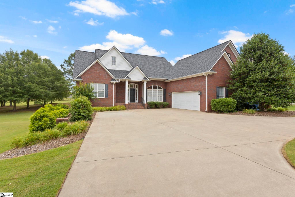 Custom Home on the 10th Fairway in Woodfin Ridge Golf Community! Welcome to this exquisite custom-built home located in the sought-after Woodfin Ridge Golf Course community. With over 4,100 square feet of living space, this residence combines luxury, comfort, and scenic golf course views. Situated on the 10th fairway, enjoy peaceful mornings or evening entertaining from the expansive private deck overlooking beautifully landscaped grounds. A circular driveway and front-loading garage provide ample parking for residents and guests. The charming brick paver front porch leads you into an open-concept layout featuring soaring ceilings and elegant details throughout. The formal dining room showcases hardwood floors and intricate molding, while the spacious great room offers a gas log fireplace, high ceilings, and stunning views. The kitchen is designed for both everyday living and entertaining, featuring solid surface countertops, a smooth cooktop, breakfast bar, and generous dining area. A convenient laundry room and powder room are located just off the kitchen. The main-level primary suite is a serene retreat with golf course views, double closets, an updated tile shower, jetted tub, and dual vanities. Upstairs, you'll find two spacious guest rooms with ample closet space and a shared hall bath, plus an additional 16x25 flex room that can be used to suit your families needs. The fully finished walk-out basement is ideal for an in-law suite, teen retreat, or guest quarters, offering a large rec room, office/workout space, bedroom, and full bath. Woodfin Ridge offers an array of amenities including an 18-hole golf course, community pool, tennis courts, playground, clubhouse, on-site restaurant, and more. Lake Bowen is just minutes away, and you’ll enjoy quick access to I-26, I-85, shopping, schools, and local airports. Recent upgrades include a new roof (2024), new water heater (2024), updated kitchen appliances, disposal, several new doors, numerous updates to the primary bath and so much more!. The backyard playset will remain. Don't miss your opportunity to own this remarkable home—schedule your private tour today!