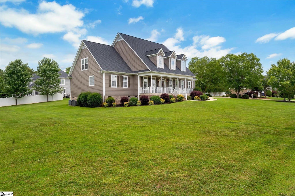 Welcome to this stunning two-story home offering approximately 3,600 square feet of comfortable living space on a generous .70-acre lot in the highly sought-after Eden’s Ridge neighborhood, with ONLY $150/year HOA!! Inside, you’ll find four bedrooms, three and a half baths, and a thoughtfully designed floor plan perfect for everyday living. This home features numerous updates and has been meticulously maintained—truly move-in ready for its next owners. Gather in the cathedral-ceiling den, complete with a cozy fireplace—perfect for chilly evenings. The home also features a formal living room, ideal for entertaining or as a dedicated office space. The primary suite is conveniently located on the main floor, offering a peaceful retreat with privacy and comfort. The spacious primary bathroom includes a jetted soaker tub, separate walk-in shower, and a large walk-in closet, creating the ultimate spa-like experience at home. The kitchen is a dream, with quartz countertops, a central island, abundant cabinetry, and a charming coffee bar and desk area. Enjoy meals in the formal dining room or the light-filled breakfast nook overlooking the backyard. Upstairs, you’ll find three spacious bedrooms and a bonus room that’s perfect as a playroom, media space, or guest area. Step outside to enjoy the rocking chair front porch, a screened-in back deck, and a dedicated grilling area—ideal for relaxing or entertaining. And...don't miss the garage! The property also includes an outbuilding with RV power hook-ups, adding extra flexibility and convenience. Located just minutes from Lake Keowee and within the coveted Daniel High School district, this home offers the ideal blend of comfort, functionality, and location.