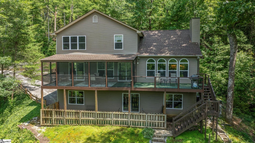 Now priced at $555,000, this mountain retreat presents a timely opportunity to secure both value and lifestyle. Recent independent appraisal well above list price, along with inspection, available for buyer confidence. Don’t miss your chance to buy smart in today’s market. Discover true tranquility in this exceptional 3-bedroom, 3.5-bath mountain home, serenely situated on 1.64 wooded acres in the peaceful Woodmere at Table Rock community. Just under 45 minutes from downtown Greenville and close to Table Rock State Park, Lake Keowee, and Lake Jocassee, this home blends scenic mountain living with versatile space, thoughtful design, and casual elegance. Whether you’re sipping coffee on the porch or unwinding in one of the generous suites, stunning mountain views are a constant companion—visible from every level of the home and offering daily reminders of your serene surroundings. The open-concept main level welcomes you with a vaulted shiplap ceiling, a striking stone fireplace, and arched windows that frame panoramic sunset views. The kitchen combines refined gray cabinetry, granite countertops, and stainless-steel appliances, creating a warm and functional space for entertaining or simply enjoying the glow across the ridgeline. Upstairs, the primary suite offers a true sanctuary with ample room for a sitting area or even an additional bedroom, and windows that capture the morning light over Horse Mountain. The walk-out lower level is a versatile in-law suite with its own driveway entrance, full bath, and a newly installed kitchenette—ideal for multi-generational living, guest privacy, or short-term rental income. The garage features a dedicated side bay, perfect for a golf cart or workshop. And no membership is required to enjoy the golf course lifestyle. The Rock at Jocassee offers pay-as-you-play access, walking trails, two scenic waterfalls, and mountain vistas throughout the community.