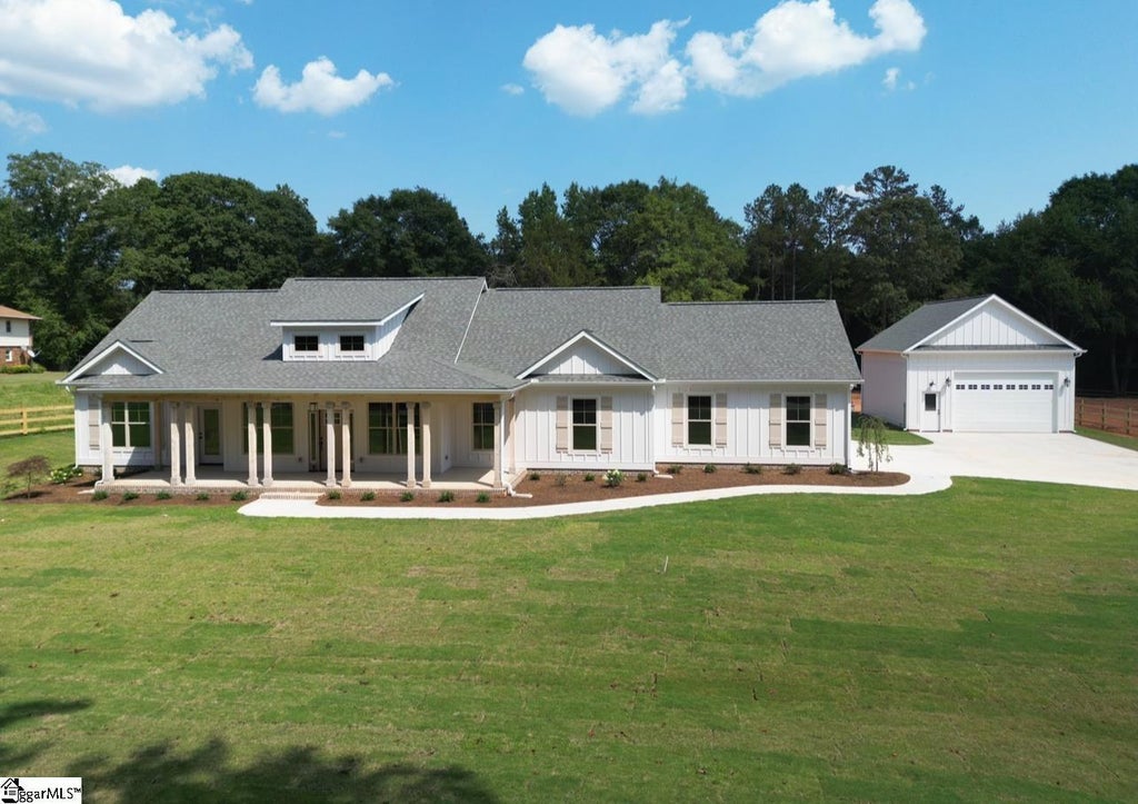 Beautiful craftsman-style home located just minutes from I-385 and Fountain Inn! This one-level gem sits on a fully usable 1-acre lot with no HOA. From the moment you pull up, you'll be welcomed by a charming front porch featuring large wood columns and beams—perfect for relaxing with your favorite drink. Inside, hardwood flooring flows throughout the home. Just off the entryway, a grand dining room showcases coffered ceilings and detailed wainscoting. Across sits the spacious living room features a gas fireplace and soaring vaulted ceiling, creating a warm and open feel. The kitchen is a showstopper with an abundance of cabinetry, tile backsplash, stainless steel appliances including a gas range, a large eat-at island, and a walk-in pantry with a custom frosted glass door. Off the kitchen, enjoy your second porch—a fully screened-in retreat with quick access to the fenced backyard. The primary suite is tucked away for privacy and features double closets, upgraded trim, recessed lighting, and a private en-suite with a tile walk-in shower (lipless entry, bench seating, and glass door). Bonus: private access from the primary bedroom to the front porch and quick access to additional room nearby—perfect for an office, nursery, or craft room On the opposite side of the home, you’ll find two more generously sized bedrooms that share a full bath, plus a spacious laundry room and built-in drop zone—ideal for organizing shoes, jackets, and bags. The oversized attached garage provides plenty of space for parking and storage, while the 25x30 detached garage/workshop across the driveway is perfect for boats, campers, hobby space, or additional vehicles. Septic system has been thoughtfully placed to allow for easy addition of a future pool. Fenced on three sides, this home is almost ready for your two- or four-legged family members. This is the total package: no HOA, one-acre lot, one-level living, move-in ready—come make this house your home!