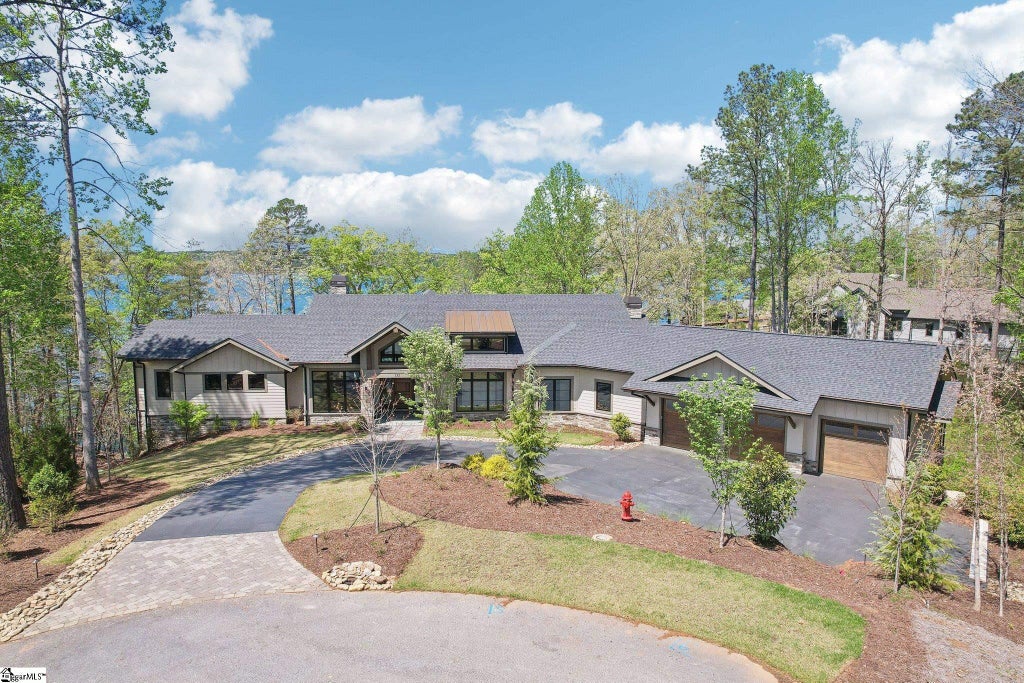 This exceptional property offers a seamless blend of thoughtful design and premium features, perfect for those seeking comfort and natural beauty. With 179 feet of pristine shoreline and expansive views of both the lake and surrounding mountains, this home delivers luxury and functionality. Crafted by Evergreen Custom Construction, the home’s transitional design integrates modern and traditional elements. The residence boasts four bedrooms, five full bathrooms, and one half bathroom, all meticulously crafted with comfort and detail in mind. The great room stands out with its soaring vaulted ceilings, accented by wooden beams, and a dramatic wall of windows framing the stunning views. The chef’s kitchen is designed for both aesthetics and functionality, featuring Wolf and Subzero appliances concealed behind custom cabinet panels, quartz countertops, and a prep kitchen offering additional storage and workspace. The main level includes a luxurious owner’s suite complete with a coffee bar, a spacious custom-shelved closet, and a spa-like bathroom for ultimate comfort. A guest bedroom and dedicated office share this floor, offering flexibility for hosting visitors or working from home. The home’s design extends outdoors, where sliding glass doors open to a covered deck equipped with retractable screens, an outdoor fireplace, and an outdoor kitchen. Additional outdoor features include a firepit and a cart path leading to the covered dock for immediate lake enjoyment. The lower level is perfect for entertaining or accommodating guests, featuring two additional bedrooms, a spacious recreational room, a wet bar, a temperature-controlled wine room, a golf cart garage, and extra storage. The home is also prepared for the addition of an elevator, ensuring accessibility for years to come. Practicality is further enhanced with utility rooms located on both the main and lower levels, making daily lake living effortless. As part of The Cliffs Landing at Keowee Springs community, residents enjoy access to world-class amenities. A Cliffs membership is available for purchase to enhance your lifestyle further. This exceptional property is an ideal opportunity to own a meticulously designed home on Lake Keowee, offering unmatched beauty, comfort, and convenience in an unparalleled location.