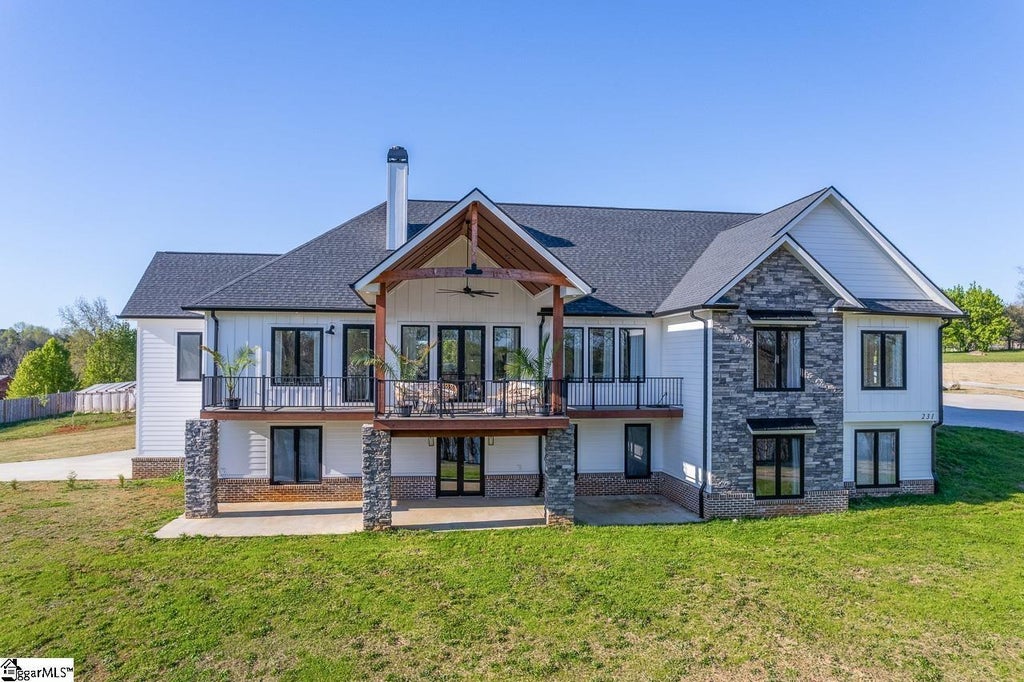 Presenting The Exquisite Estate at 231 Canady Road, great view of LAKE COOLEY, unparalleled amenities is TRULY one of a kind. A remarkable 5- bedroom and 3.5 bathroom MODERN STYLE residence with 2.2 acres no restrictions, on a hilltop. The GRAND ENTRANCE with double door leading into a shiplap style foyer with barn door and gorgeous large tile. A well designed open concept GREAT ROOM combined with dinning area around a huge CHARMING natural gas fire place in the center, overseeing the BEAUTIFUL stairway. Coffered 12' ceiling stepping down to 10' to distinguish between great room, dinning and foyer. Possibility of sixth bedroom on the first floor. The open large kitchen centered around enormous 10x4' island with ample storage cabinets and plenty of seating, combined with nook and breakfast area. THE KITCHEN featuring leather finish DOLOMITE countertops and backsplash, stainless appliance and modern style hood with additional custom heavy duty vent, custom cabinetry, generous stainless farm sink, pot filler, 5 burner gas range and double oven. Sound system, central vac, 8' modern style doors throughout, luxury vinyl plank floors extremely durable in the whole house, NO CARPET. The OWNERS SUITE with own separate access door to the front deck to relax, ENJOY the nature and gaze over with BREATHTAKING view of the LAKE. Also featuring a luxury relaxing soaking jetted bathtub, all glass separate shower, double vanity, two walk in closets and the AMAZING LARGE tile works. WOW! From the garage step into mudroom and laundry with doors to the back patio. A secluded cellar with hatch locking doors in the floor with 10" all concrete walls and floor for all your canning and storage needs. Step into the backyard OASIS with fenced-in BIG partially covered for grilling/cooking concrete patio overseeing concrete ball court/bike riding enormous pad, playground overviewed from kitchen window, natural gas fire-pit with sitting area. On the first floor a HUGE open family room with wood burning fireplace great for family gathering, with another bedroom and office, studio/rec room, heated floor full bathroom and tornado shelter room. Also 2 tankless naturalgas water heaters for constant water for both floors, well, 3 irrigation zones system for front and backyard. Also gas generator (generac) outside ready to take over the house in case of power outage, A 1000 gallon tank barred in the ground and additional workshop with lights. WOW! Potentially a separate apartment in the back has own private access, with rough electrical, plumbing, and HVAC, sauna room is available too. Lots of privacy house sits on a dead end road. With the limited inventory market THIS IS A GEM, perfectly located in the middle, minutes from HWY 176 and HWY 29. Minutes away from Lake Cooley park with boat ramp access. Within 20 minutes from GSP airport, BMW plant, shopping, restaurants and parks make it the epitome of convenience in the PRIME Lyman area.