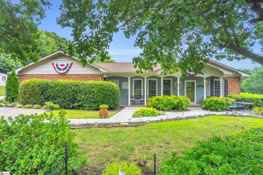 Welcome to your private oasis in this peaceful area of South Anderson County! Nestled atop a gently sloping knoll in a quiet neighborhood, this beautifully maintained 4-bedroom, 2.5-bath brick ranch offers a blend of modern updates and timeless charm. Located just outside the city limits of Iva and minutes from Hwy 81, you will enjoy both privacy and convenience. Inside you will find a thoughtfully updated floor plan featuring a formal dining room with custom wainscoting and an adjacent flex room—perfect for a home office, study, or playroom. The spacious family room centers around a masonry fireplace with gas logs, built-in cabinetry, and a cozy breakfast area with seamless flow into the updated kitchen. The kitchen is a showstopper, boasting quartz countertops, a bay window for natural light, a custom hood vent, shiplap accents, and recessed lighting—ideal for both everyday living and entertaining. All baths have been tastefully remodeled with new vanities, custom tile, and lighting. The primary suite includes two closets and a beautifully updated ensuite bath with a double vanity and walk-in tiled shower. One secondary bedroom includes a private half bath—ideal for guests or multi-generational living. Additional features include: 2-car carport with built-in storage cabinets and a separate storage room. Spacious laundry room with built-in cabinets and an exterior access door to the pool area. Flooring includes Lifeproof luxury vinyl plank, ceramic tile, and carpet (bedrooms). Major systems updated: Roof (2019), HVAC (2022), water heater (2019), updated windows, interior doors, interior paint, gutters (downspouts) and front/storm doors. Well maintained in-ground pool (new pool liner) and pool deck—ready for summer enjoyment. Two outbuildings (metal), wooden shed plus a 12x26 RV shed to convey. Existing well on-site (not used by current owners; conveys as-is). Enjoy the peace and space of living in a rural community with modern amenities and updates in place. Don’t miss your chance to own this exceptional property. Schedule your private showing today and come feel the warmth this home has to offer!