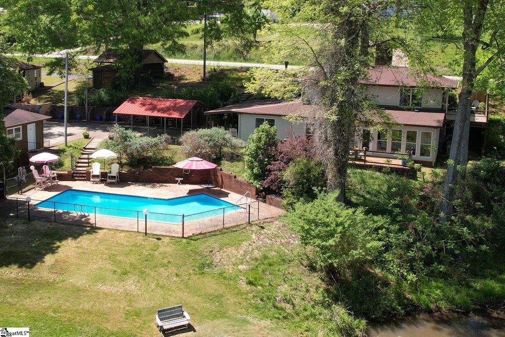 Lakefront Home with guest cottage, pool, and 6 car detached garage. This one-of-a-kind 2-bedroom, 1.5-bath home, paired with a delightful 1-bedroom, 1-bathroom guest cottage, promises an idyllic retreat from the hustle and bustle of everyday life. As you approach, the charming rocking chair front porch invites you to slow down and savor the moment. Step inside to discover a living room, featuring stunning hardwood floors and a warm brick fireplace, now transformed into a cozy wood-burning option.The sunroom, a true gem, offers a peaceful sanctuary where you can soak in the stunning vistas of the lake. Right off the sunroom is a beautiful new deck with lake views—perfect for entertaining or alfresco dining! The kitchen has been completely remodeled, adding a wall to create a welcoming foyer. It is equipped with modern appliances, updated countertops, and a convenient bar area, making it an ideal space for culinary creativity. A large pantry area was created on the kitchen side of the living room, which could easily transform into an office to suit your needs. For added convenience, a powder room has been added off the laundry room. The primary bedroom serves as a cozy retreat, boasting ample closet space and easy access to the beautifully appointed full bathroom, which features double vanities for added convenience. Step out onto your private balcony to enjoy a moment of tranquility as you take in the serene surroundings.Outside, your own “L”-shaped in-ground pool awaits, providing the ultimate spot for summer relaxation and fun, complete with a tiki hut that adds a tropical touch. The expansive 6-car garage doubles as a lively game room, featuring a pool table and bar—an entertainer's dream! With climate control for year-round enjoyment, this space is perfect for game nights or family gatherings. Plus, the generous storage room beneath the garage keeps everything organized and ready for use.Don’t overlook the versatile guest cottage! This charming 1-bedroom, 1-bathroom retreat features its own kitchen, living room, and private access, making it ideal for guests, an Airbnb rental, or an in-law suite. With endless possibilities, it’s a fantastic income opportunity just waiting to be tapped. This extraordinary property stands out not only for its stunning features but also for the lifestyle it offers. Enjoy the luxury of vacationing at home, with panoramic lake views from nearly every room and outdoor spaces designed for relaxation and entertainment. Schedule your appointment today and seize the opportunity to make this lakeside haven your own!