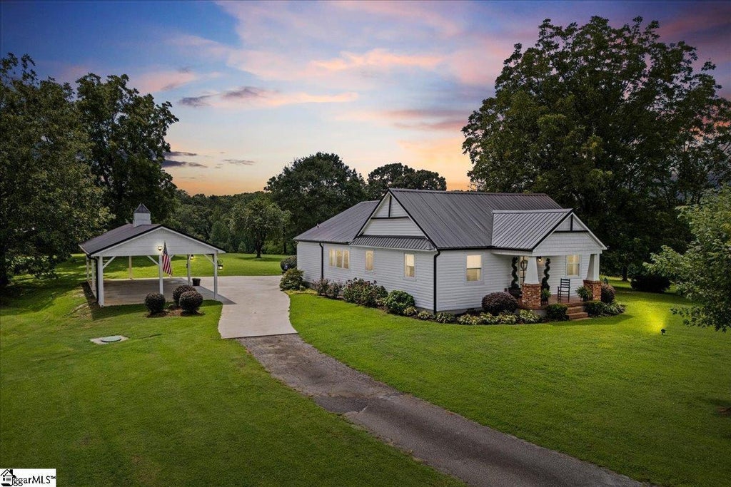 Exquisite and timeless, this custom farmhouse blends 1940’s character with modern luxury perched on 4+ acres of serene countryside. Additions were added on, and the home was thoughtfully updated inside and out. It showcases three bedrooms, four full bathrooms, and multiple living spaces designed with both comfort and style in mind. There is a family suite attached to the rear of the home with a kitchenette and full bath, providing endless flexibility for in-laws, guests, entertaining, or even rental potential. The heart of the home shines with high-end finishes with luxury appliances, including two Italian gas ranges (Ilve + Bertazzoni), granite countertops, marble backsplash, multiple fireplaces, and a free-standing tub in both primary suites. Outside, every detail invites you to slow down and savor the setting. Multiple patios overlook rolling pastures, walking trails, local wildlife, and landscape enriched with fruit bushes and nut trees . A four-car carport is the perfect addition and can double as an elegant entertaining pavilion, while the striking barn near the rear of the property offers endless possibilities—from memorable gatherings to a picturesque event venue. Modern essentials—metal roof, dual tankless water heaters, two septic systems, and much more ensure the home is as practical as it is stylish. A rare blend of sophistication and country charm, this farmhouse is more than a home—it’s a destination.