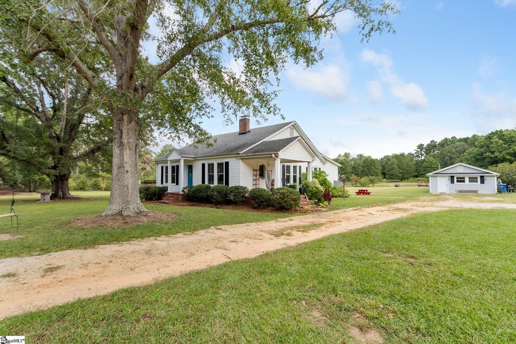 WELCOME TO YOUR MINI FARM at 7302 Highway 76 W in Laurens, SC! This well-maintained 3 bedroom, 1 bath home sits on 5.6 acres of fully fenced land, offering the perfect setting for a life filled with fresh air, wide-open spaces, and the joy of simple living. Inside you'll find a comfortable living space where every room has peaceful views. Step outside and you’ll discover everything you need to create your own mini-farm or homestead. Picture gathering baskets of fresh figs in the summer, pecans in the fall, or peaches and plums in between. Stroll through rows of muscadine and scuppernong vines that are already producing, or pick a bouquet of zinnias and wild sunflowers straight from your garden. With a ½ acre enriched garden plot and 12 raised beds, there’s room for vegetables, herbs, and flowers to thrive. Animal lovers will find plenty to appreciate as well. Start your mornings with fresh eggs from the 28x12 chicken coop, complete with feed room and nesting boxes. A cow milking station is already in place, and the 3 acre gated pasture provides space for livestock or horses to roam. It’s the kind of property where kids can run barefoot through the grass, evenings can be spent watching the sunset over the pasture, and life feels a little slower in all the best ways. The 2,000 sq. ft. outbuilding adds even more flexibility, with power, water, heating, and cooling already in place. Do you need storage, a workshop, a homeschool space, a home office, room for big projects, or a home gym? This space can accommodate it all! Though private and peaceful, this property keeps you connected with nearby schools, shopping, and easy highway access. Charming Laurens, South Carolina is just minutes away with its historic downtown Square. At 7302 Highway 76 W, every season brings something new to enjoy: fresh harvests, blooming flowers, and the freedom to live life on your own terms. If you’ve been searching for a place where you can raise animals, grow food, and truly savor the beauty of the outdoors, this property is waiting to welcome you home.