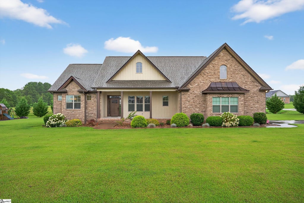 Beautiful 3-bedroom, 3-full bath home with versatile flex space, situated on a spacious 1-acre lot in Cowpens. This property is filled with custom features including ¾-inch hardwood floors, a rocked gas fireplace, copper roof accents, custom cabinetry, granite countertops, ceramic tile, and vaulted/tray ceilings throughout. The open kitchen includes a walk-in pantry and flows into a large laundry room with a utility sink for added convenience. Step outside to enjoy a covered back porch, saltwater pool, and playground—perfect for entertaining, relaxing, or family fun. The master suite features tray ceilings with crown molding and cove lighting, two oversized walk-in closets, a garden tub, a custom tiled shower, and double vanities. Bedroom 2 also boasts a large walk-in closet, and there are four additional storage closets throughout the home. A flexible room—complete with a nearby full bathroom and closet—offers endless possibilities: a fourth bedroom, guest suite, or private home office. All major appliances (washer, dryer, refrigerator, stove, microwave, and dishwasher)will remain with an acceptable offer, making this home truly move-in ready. The level backyard is ideal for kids, pets, and outdoor fun—from running and playing to relaxing by the pool. It’s also perfect for gardening or future outdoor living projects. Located in a quiet area near I-85, between Spartanburg and Gaffney, this home offers space, privacy, and convenience.