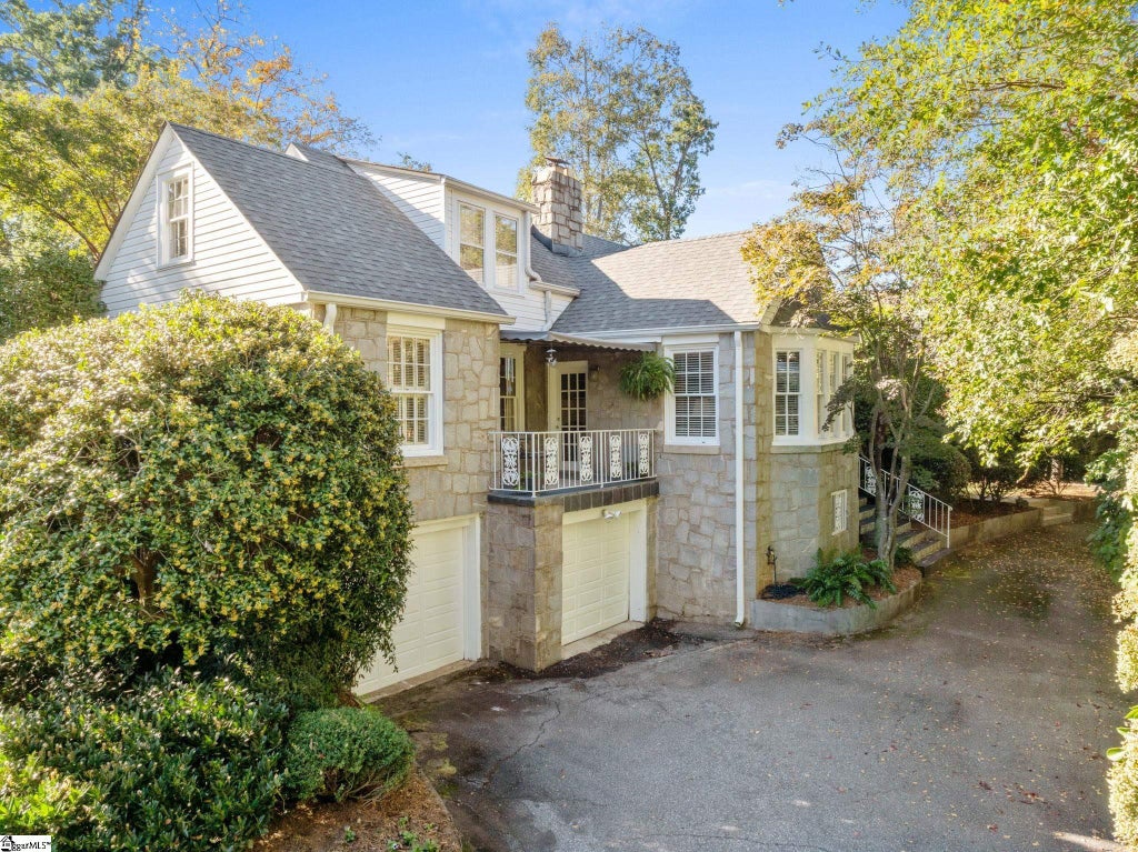 Timeless charm meets classic Greenville character at 47 Douglas Drive. This stately stone home sits gracefully among mature trees and lush landscaping, offering privacy and tranquility just moments from Greenville Country Club and Augusta Road. The granite façade and classic architectural details showcase craftsmanship rarely found today. A welcoming front porch with wrought-iron railings and a cozy awning creates the perfect spot to enjoy morning coffee or greet neighbors. Inside, you’ll find light-filled living spaces that blend warmth and elegance. The living room has a stone fireplace, hardwood floors, and crown molding, perfect for relaxing or hosting guests. A formal dining room with French doors opens to a cheerful sitting room, while the updated kitchen offers vintage charm and modern convenience with white cabinetry, solid-surface countertops, and abundant natural light. The main-level owner’s suite is a peaceful retreat with two walk-in closets and an updated bath featuring a double vanity, glass-enclosed shower, and soaking tub. Upstairs there are two additional bedrooms filled with character, plus a full bath with both tub and shower—perfect for family or guests. Outdoors, a private courtyard-style deck provides a serene space for entertaining or relaxing, surrounded by lush greenery and built-in bench seating. From its historic stonework to its ideal Augusta Road location, this home embodies the very best of Greenville’s timeless character and charm.