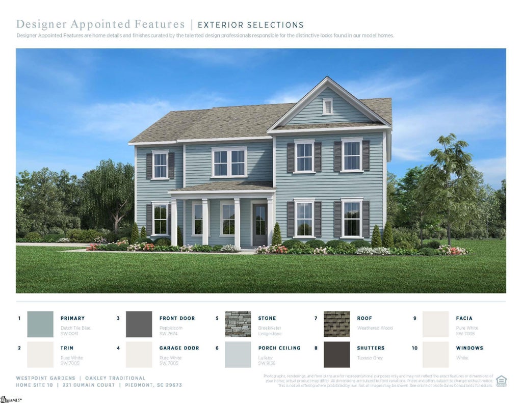 Welcome home to the beautiful Oakley Farmhouse that sits on a half acre home site. Approximate completion date December 2025. This 4 bedroom, 3.5 bath, 3,796 square-foot home is available for a quick move-in. The open-concept kitchen flows effortlessly into the great room and dining room, making this floor plan ideal for entertaining. Expand your living space with the second-floor loft that is perfectly designed to fit your lifestyle. Provide an escape for your family with the expansive backyard, perfect for a pool to be installed. Be the first to see this gorgeous home in person by scheduling an appointment today! Westpoint Gardens is a new home community in Piedmont, SC, offering architectural excellence, expansive half-acre home sites, premium features, and quality craftsmanship, all within walking distance to Woodmont High School.